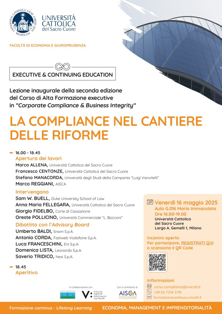 La compliance del cantiere delle riforme: Lezione inaugurale della seconda edizione del Corso di Alta Formazione executive in “Corporate Compliance & Business Integrity”