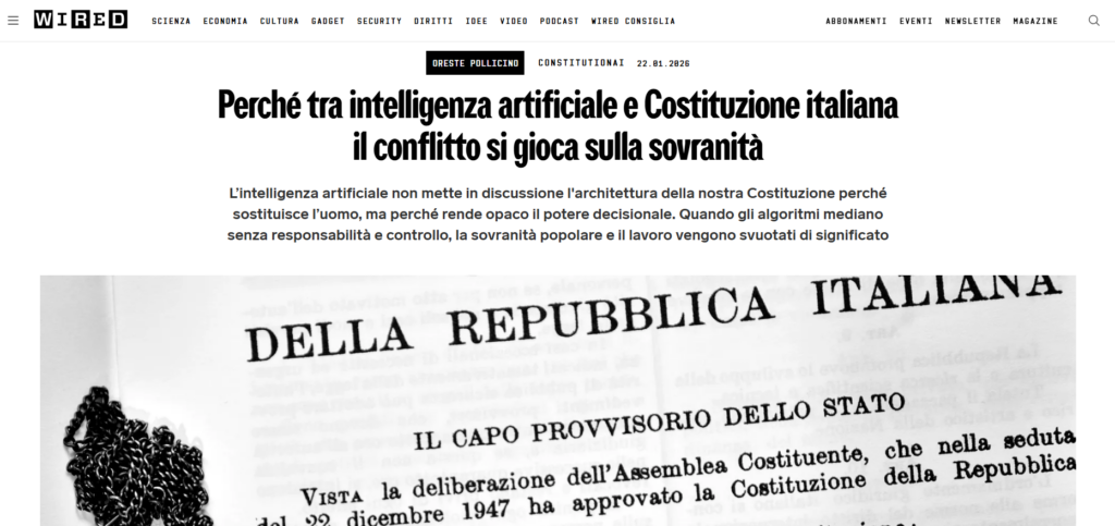 Perché tra intelligenza artificiale e Costituzione italiana il conflitto si gioca sulla sovranità, di O. Pollicino, Wired, 22-01-2026