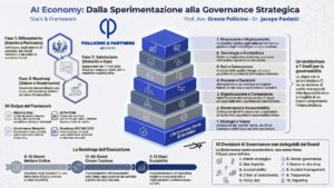 È online il nuovo Policy Brief “Intelligenza Artificiale, da sperimentazione a scelta di governance. AI Economy Stack & Framework”, a cura di Jacopo Paoletti e del Prof. Avv. Oreste Pollicino, che propone un modello operativo per accompagnare manager e imprenditori nella trasformazione dell’Intelligenza Artificiale da insieme di iniziative sperimentali a vera e propria capacità organizzativa governata.