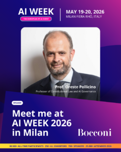 Il Prof. Oreste Pollicino parteciperà come relatore a AI Week 2026, uno dei principali eventi internazionali dedicati all’intelligenza artificiale, in programma in Italia e rivolto a imprese, istituzioni e professionisti del settore.