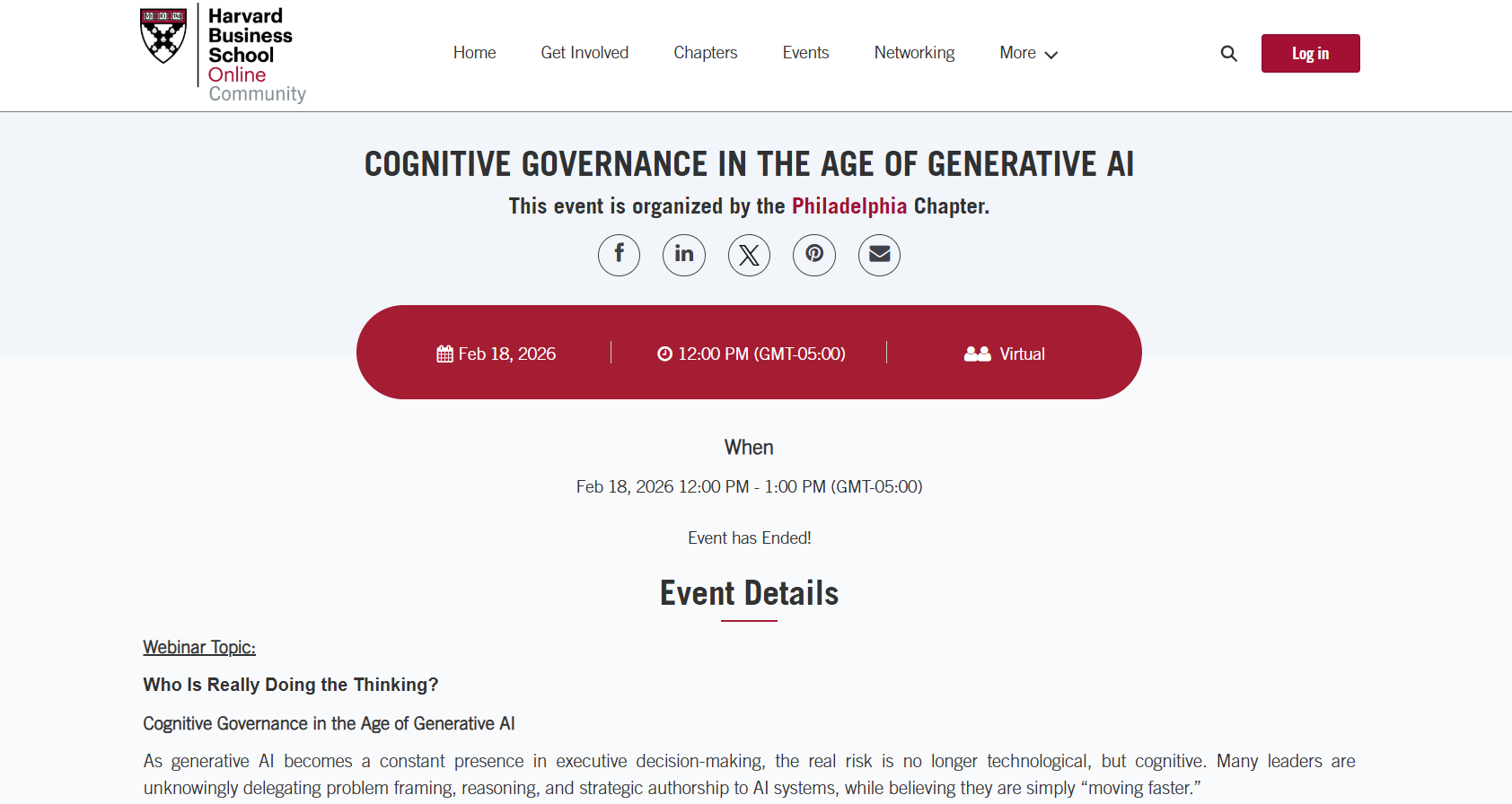Visita il sito ufficiale: https://hbsonlinecommunity.myhbx.org/s/event/aDIQm0000000pqXOAQ/cognitive-governance-in-the-age-of-generative-ai