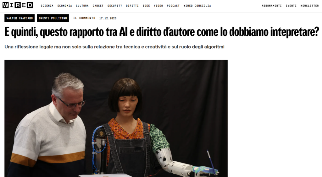 E quindi, questo rapporto tra AI e diritto d’autore come lo dobbiamo interpretare?, di V. Fraccaro e O. Pollicino, Wired, 17-12-2025