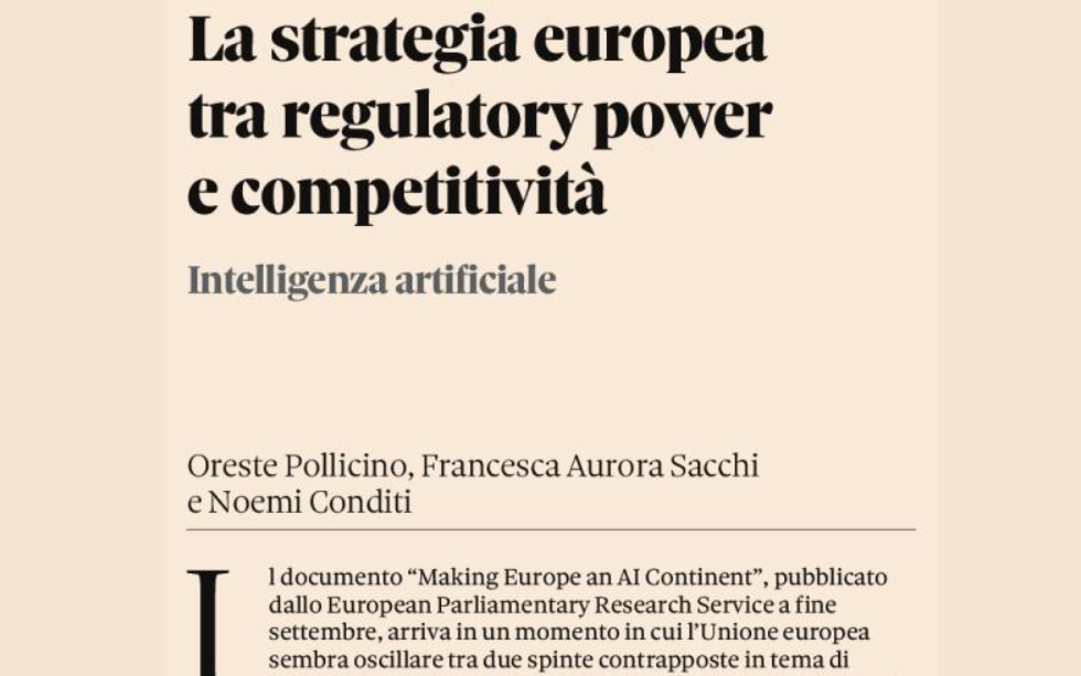 Il documento “Making Europe an AI Continent”, pubblicato dallo European Parliamentary Research Service a fine settembre, arriva in un momento in cui l’Unione europea sembra oscillare tra due spinte contrapposte in tema di intelligenza artificiale: da un lato la volontà di consolidare il proprio ruolo globale di regulatory power con l’Ai Act, già dimostrato in materia di dati personali con il Gdpr; dall’altro, la necessità di incentivare l’innovazione tecnologica in Europa e la sua competitività rispetto a Stati Uniti e Cina. Sullo sfondo, riaffiora un principio antico ma attualissimo: non vi è tutela effettiva dei diritti senza strumenti giuridici vincolanti, ma nessuna regolazione sopravvive se non è sorretta da politiche e infrastrutture adeguate.