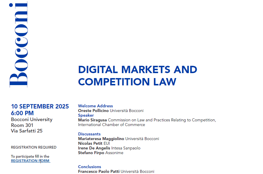 Digital Markets and Competition Law, Room 301 – Università Bocconi, Milano, 10 Settembre 2025 Settembre 5, 2025