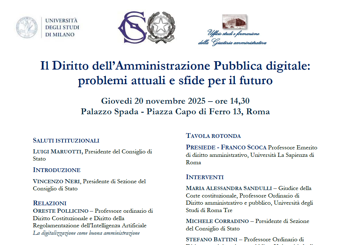 Il Diritto dell’Amministrazione Pubblica digitale: problemi attuali e sfide per il futuro, Palazzo Spada, Roma, 20 Novembre 2025 Settembre 5, 2025