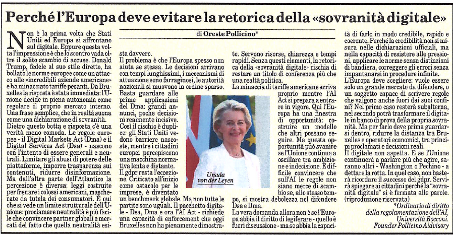 Perché l’Europa deve evitare la retorica della “sovranità digitale”, Milano Finanza, 06-09-2025 Settembre 6, 2025