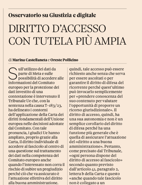 (con G. De Gregorio), L’anonimizzazione non esonera dagli obblighi di protezione e trasparenza, Il Sole 24 Ore, 23-09-2025 Settembre 23, 2025