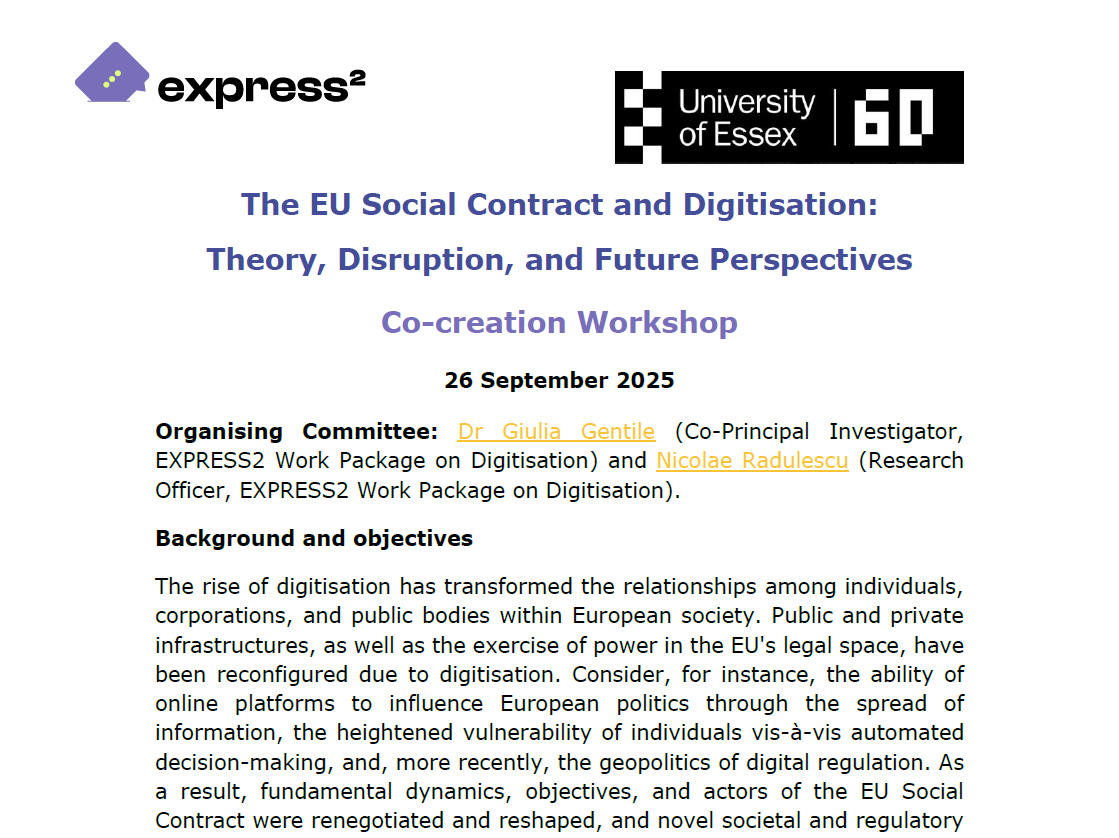 The EU Social Contract and Digitisation: Theory, Disruption, and Future Perspectives Co-creation Workshop, University of Essex, 26 Settembre 2025 Settembre 16, 2025