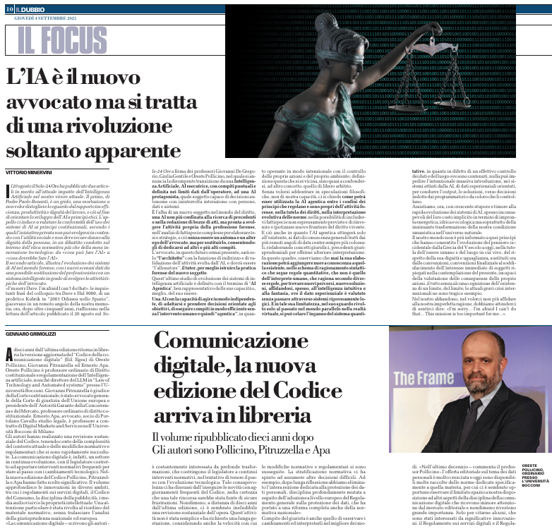Comunicazione digitale, la nuova edizione del Codice arriva in libreria, di Gennaro Grimolizzi, Il Dubbio, 4 Settembre 2025 Settembre 4, 2025