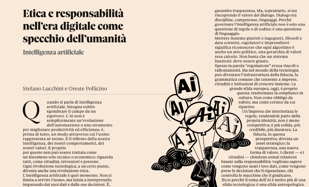 (con S. Lucchini), Etica e responsabilità nell’era digitale come specchio dell’umanità, Il Sole 24 Ore, 29-10-2025 Ottobre 30, 2025