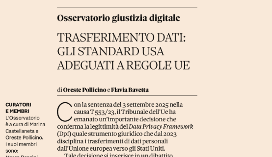 (con F. Bavetta), Trasferimento dati: gli standard USA adeguati a regole UE, Il Sole 24 Ore, 04-11-2025 Novembre 5, 2025