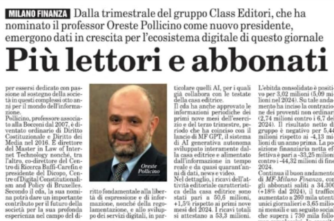 Class Editori, in crescita lettori e abbonati di MF-Milano Finanza. Pollicino nuovo presidente. Spinta sulla AI con MF GPT, Milano Finanza, 15-11-2025 Novembre 17, 2025